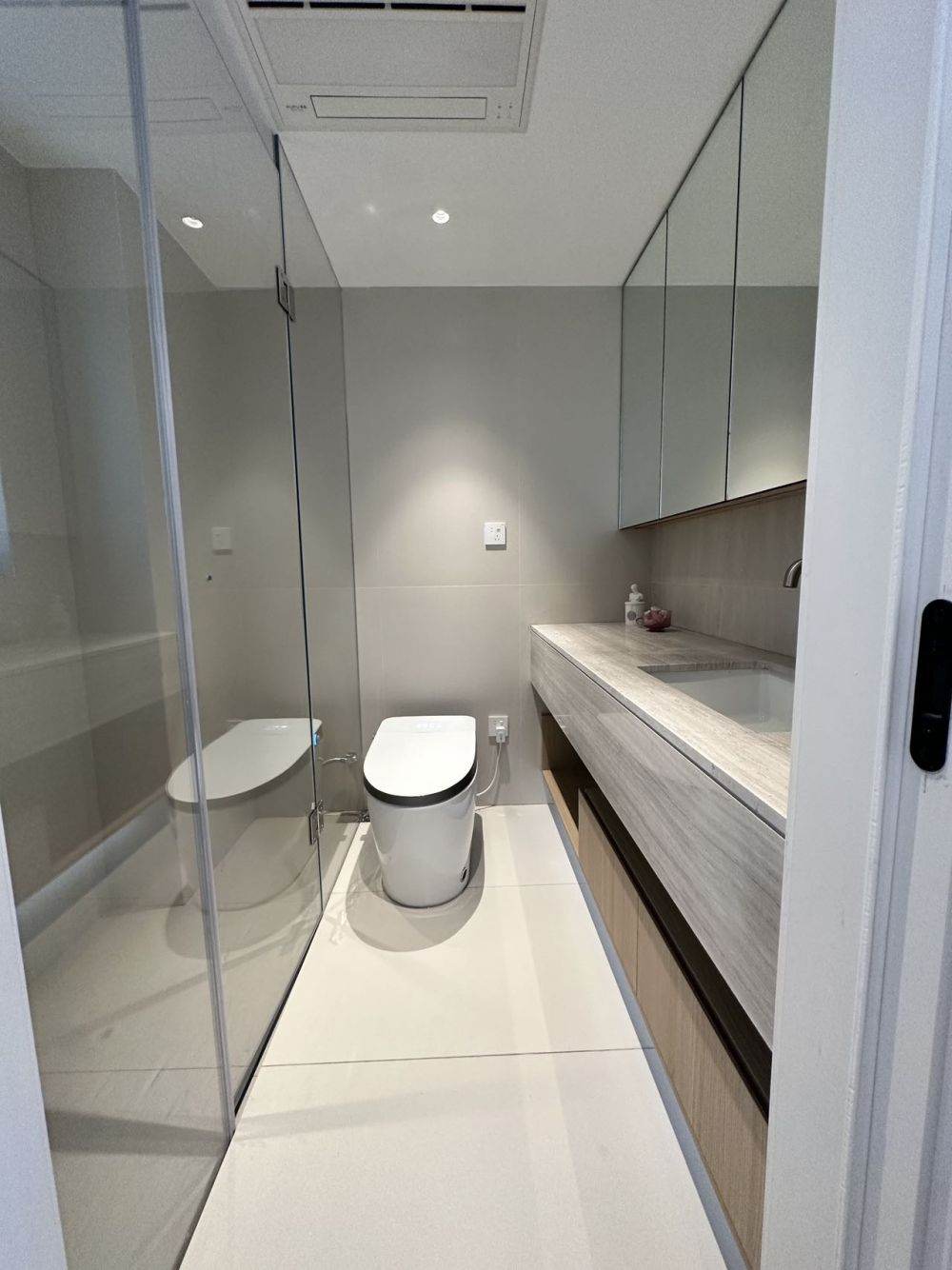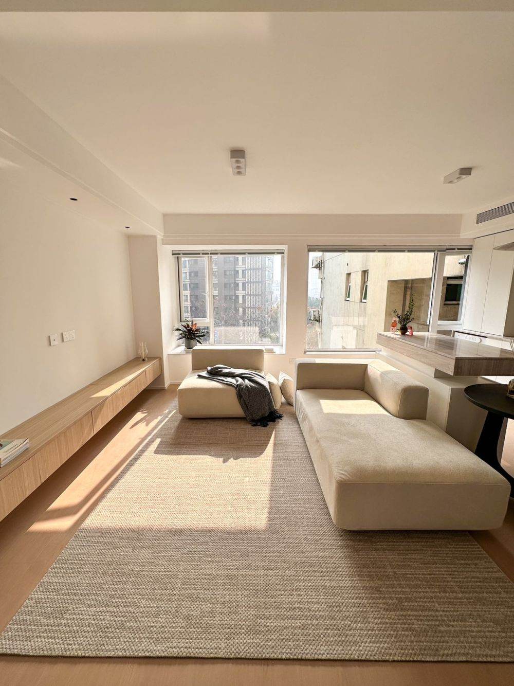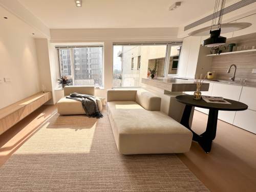 In Chez Moi, it is one special house with horizontal hall and south facing open balcony. In the master bedroom there are windows facing south and east. In each room you can feel it bright and sunny that in daytime there is no need to turn on light and natural ventilation is also excellent. Floor heating driven by gas and central AC has been applied in the whole house. The open kitchen is equipped with oven, dishwasher embedded, washing machine with dryer built-in. The furniture is designed wholly to bring good appearance.