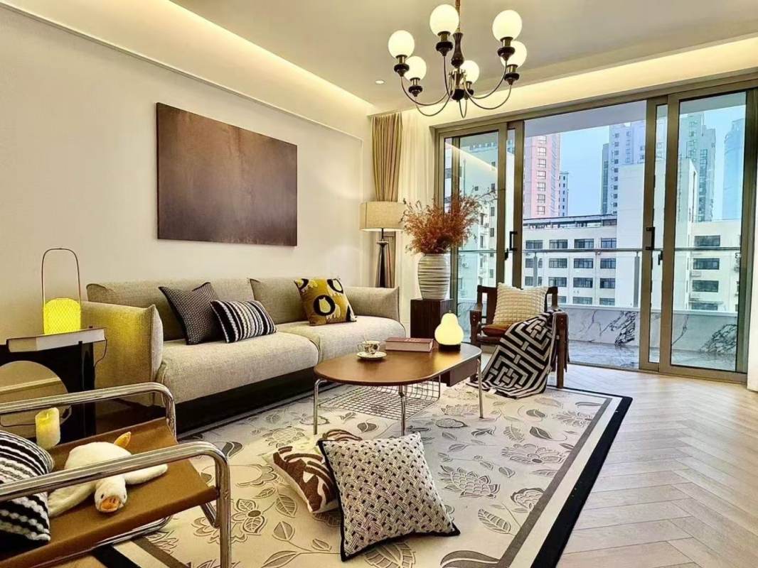 Kangning Peaceful Palace is belong to west nan jing road CBD ,walking distance to metro line 2,12,13 and Taikoo Hui shopping mall ,you have another big shopping mall in 5 mins walk ,beautiful Su zhou river also in 500 meters away ,where you can walk ,run along for more than 15 KM .This is a very modern 2 bedrooms on high floor with very nice view from the open balcony ,very bright ,warm and good quality 2 bedrooms with floor heating and central aircon ,all modern and good quality furniture ,western kitchen with oven and water filter and 2 door Fridge ,very nice 2 bedrooms for couple