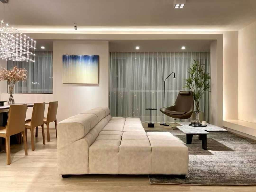 Exquisite 180sqm 3-bedroom 2-bathroom apartment, located just an 8-minute walk from Jiashan Road Metro Station. Recently renovated to a high standard with contemporary finishes. Features a generous south-facing living and dining area connected to an indoor balcony, offering abundant natural light and a seamless flow for daily life and entertaining. Fully equipped open kitchen with oven and double-door fridge. Two well-proportioned south-facing bedrooms and one north-facing bedroom. The master suite boasts an ensuite bathroom with a bathtub. Steps away from vibrant dining, shopping, and entertainment options in the popular Dapuqiao area and SML mall.