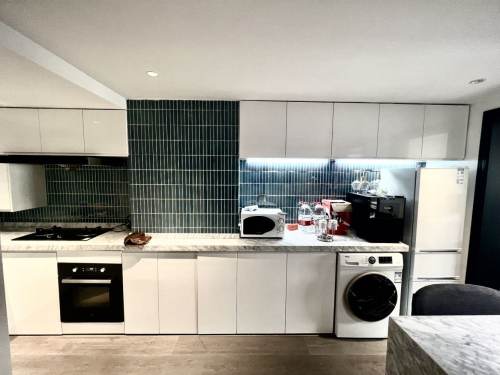 1 big bedroom, 1 living room, 9th floor with central ac, wall heating, oven and dryer, 90 sqm, walking distance to changping metro of line 7, nice area with lots of nice restaurants and coffee houses nearby, the price is 12K~~~