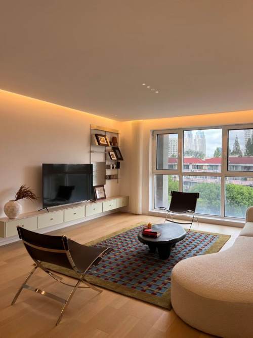 29K/month, Zhaofeng Jiaoyuan, 170㎡, 3 bedrooms, 2 living rooms, 2 bathrooms + 3 balconies, floor-to-ceiling windows, no main lighting design, large living room with floor-to-ceiling windows + open dining bar, independent kitchen, work balcony, whole-house underfloor heating, central air conditioning, washing machine + dryer, built-in oven, dishwasher, microwave oven, built-in electric towel rack, electric toilet, quality community, community card allows direct access to Zhongshan Park, two elevators for two households per floor (each floor has dry and wet trash bins), no need to go downstairs, can rent a fixed parking space.