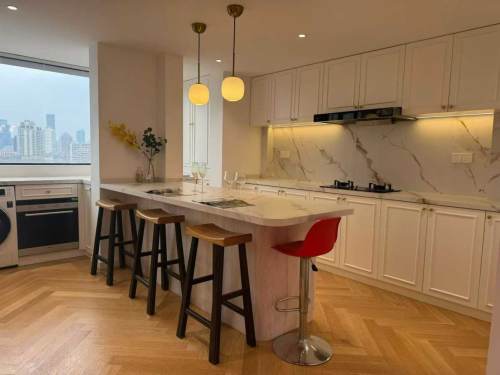 ¥25,800/M; Urumqi/Zhaojiabang road; elevator building floor heating 3brs/2lv/2bt apt wt balcony; 3 mins to line 9/7 zhaojiabang station; close to Xujiahui center; 155Sqm