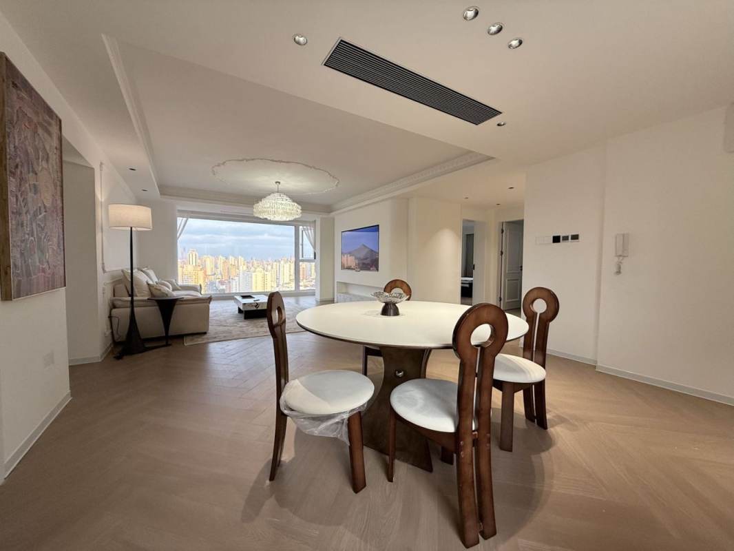 Oujiang Mansion is in very good location ,just 200 meters to the beautiful Xujiahui park ,within 8 mins walk to metro line 1,9,11 and Xujiahui shopping malls and Xujiahui church ,you have many nice restaurants and bars nearby .This is a nice 3 bedrooms on high floor with nice view ,whole apartment with floor heating and central aircon ,open kitchen with oven ,dish washer and double door Fridge ,you have very modern and good quality brand new furniture ,very good price for family clients in good location