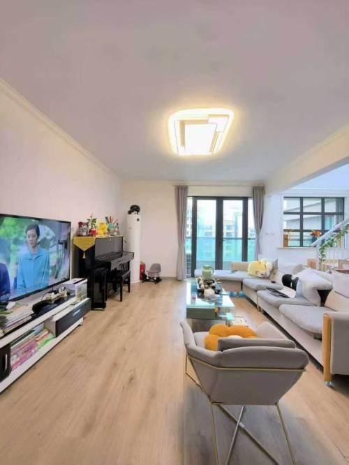 This bright 5-bedroom 3-bathroom penthouse duplex, crowning the Shanghai Greentown community adjacent to Century Park, features five private suites, each with either an en-suite bathroom, walk-in closet, or study. The home is bathed in natural light, with a north-south orientation, soaring ceilings in the living area, and a seamless sense of space. A dedicated underground parking space is also available. Residents enjoy access to extensive amenities including a clubhouse, indoor/outdoor pools, and tennis courts, all within a beautifully landscaped, pedestrian-friendly setting just a walk from Century Park Metro Station.