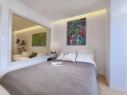 it's fully fraught with natural light, equipped with delicate/cozy couch, mattress etc.