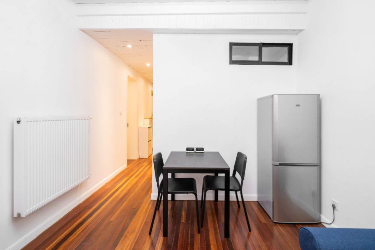 It's on 2nd floor, has 2 bedrooms, 1bathroom, and open-plan kitchen.