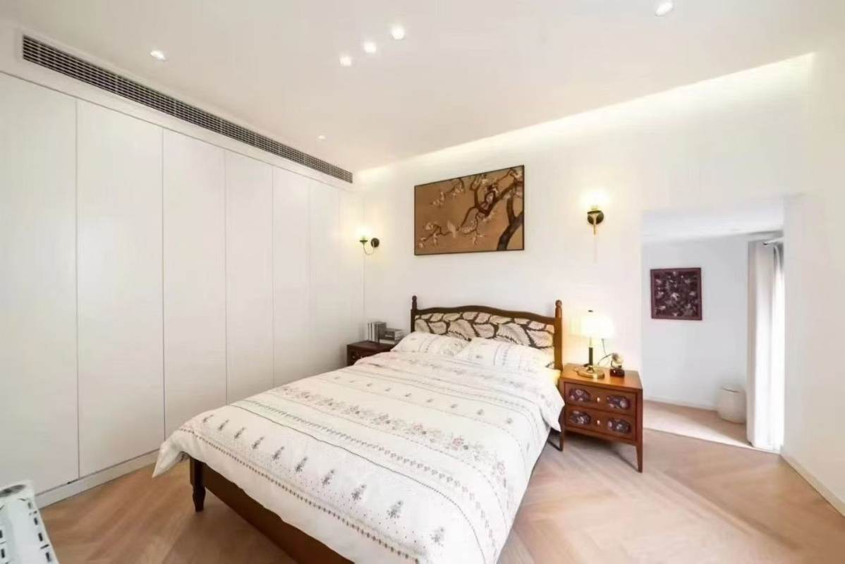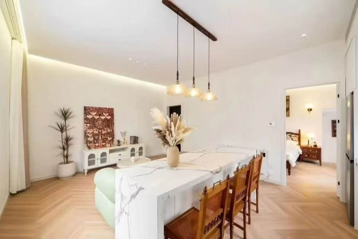 Bright, airy, and full of charm, this modern 1+1 bedroom lane house on Yueyang Road features a generous private terrace. The living area flows seemlessly to an open kitchen equipped with an oven, styled in a fresh, contemporary aesthetic. Floor heating and central AC are available. Walking distance to South Shaanxi Road, Changshu Road, and Hengshan Road Metro Stations.