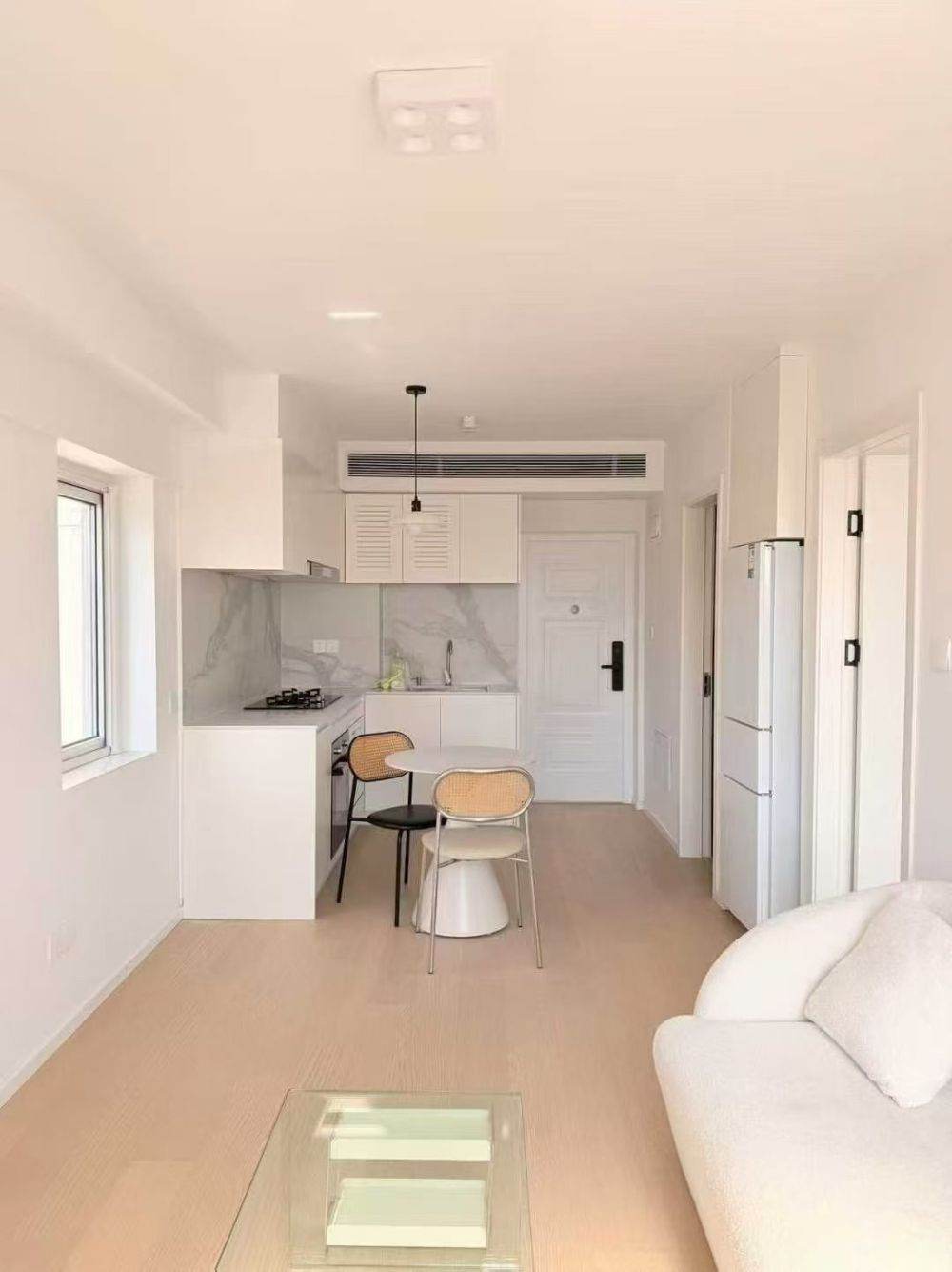 The apartment is nicely designed and renovated apartment on yueyang road. It has a separated living room with nice city view from 14F. There is build-in oven in the kitchen and floor heating. This apartment is super bright. The condition of the apartment is still very good.