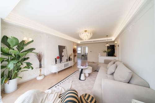 【Features】: Light French style, whole-house central AC, underfloor heating, large dining table, oven, dishwasher, double-door refrigerator, desk, washer-dryer set, bathtub, smart toilet, large balcony, bay window, north-south layout