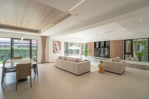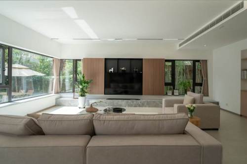 Juli Park is a nice house compound nearby German&French school ,most of the houses are 2 floor houses with nice garden ,nice Chaetau town with many restaurants and bars just in walking distance .You have nice Gym and indoor swimming pool in the compound ,compare with other expensive houses ,this compound has the most economical price .This is a modern decorated big size 5bedrooms with floor heating ,big living room with nice garden ,open kitchen with oven ,dish washer and big fridge .very clean and modern houses with modern and good quality furniture .Very bright and warm houses