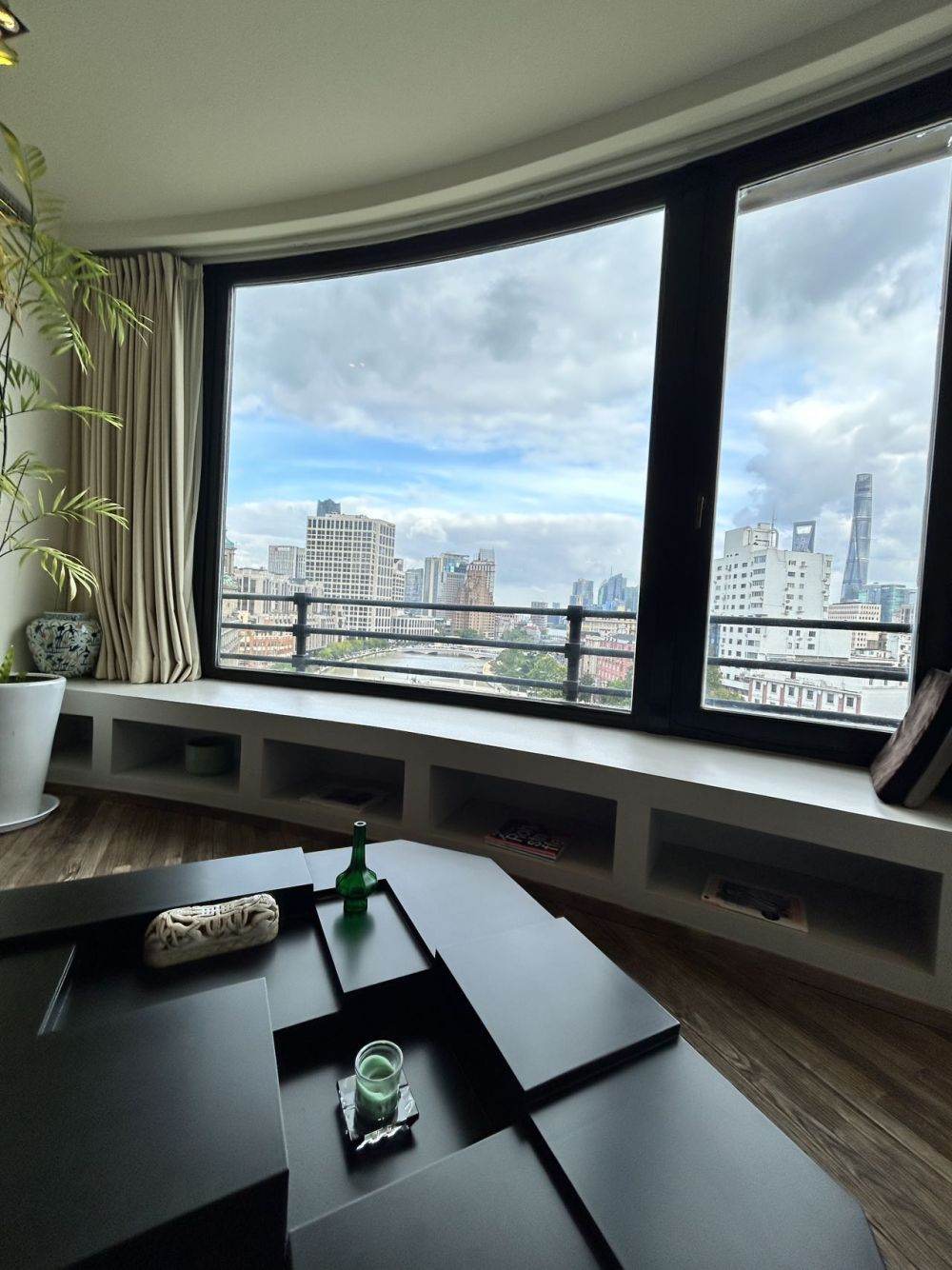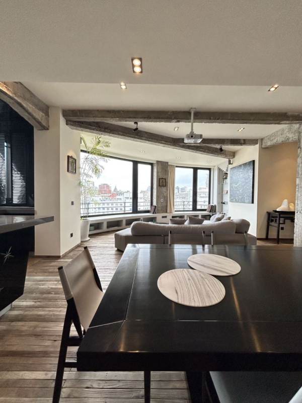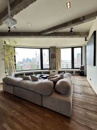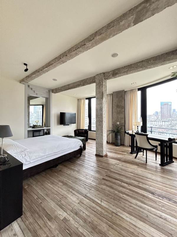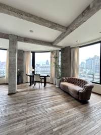 This distinctive 190sqm residence is located within the iconic Embankment Building, a historic property known as the "Asia's No. 1 Apartment" in its time. Rather than dividing the generous floor plan into multiple bedrooms, the current layout prioritizes grand living spaces, featuring an expansive living and dining area alongside one bedroom and a separate study. Large floor-to-ceiling windows frame a direct view of the winding Suzhou Creek and offer a panoramic vista of the Oriental Pearl Tower and the Lujiazui skyline in the distance. The industrial-style interior design thoughtfully complements the building's historic character. With Tiantong Road Metro Station just a 3-minute walk away, and the Bund itself within comfortable walking distance.