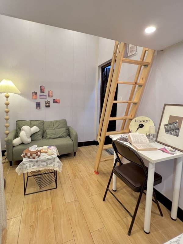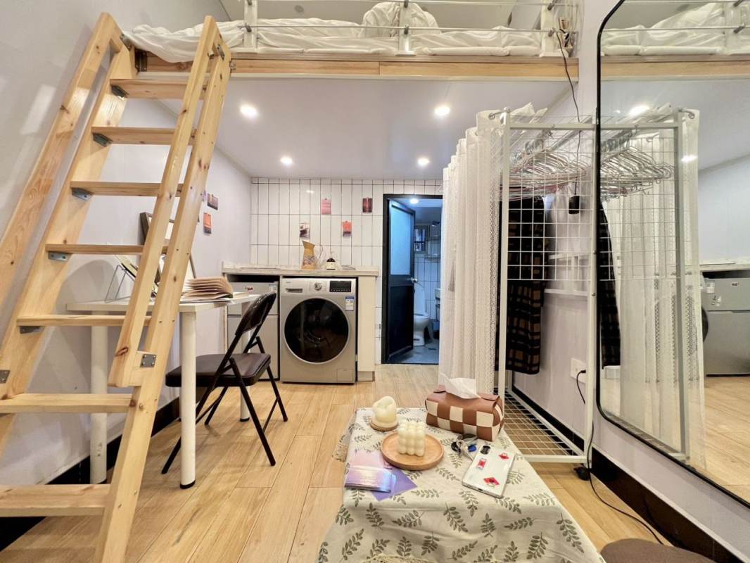 Small footprint, big style. This clever loft studio gives you a separate sleeping area upstairs, a private bathroom (yep, all to yourself), induction cooktop for quick meals, and your own washer. AC, good storage, quiet lane house vibe but right in the middle of it all. Perfect for one person or a couple who wants to actually live in central Shanghai without wasting space or money.
