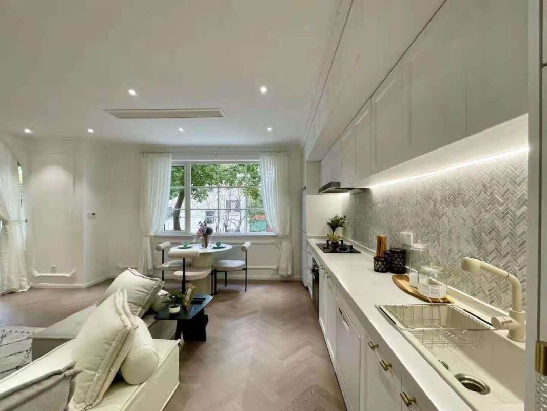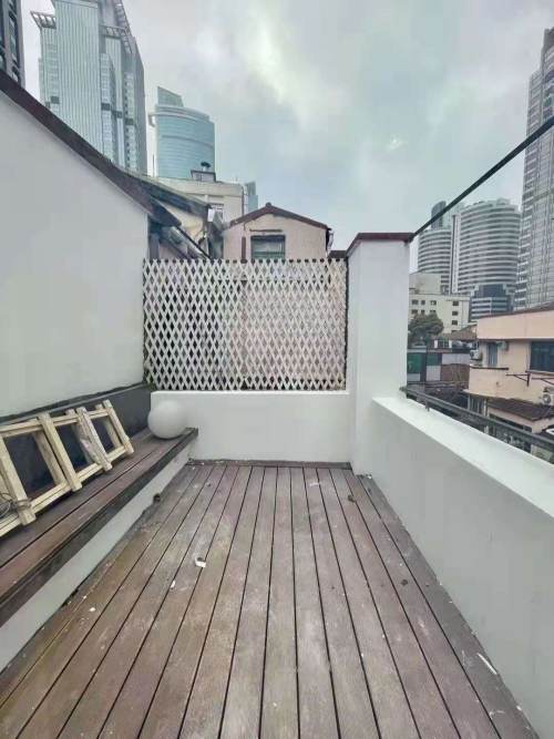 A charming 2-bedroom old house, moments from West Nanjing Road Metro Station. The home is finished in a soft, elegant palette and features a private terrace. Large windows frame green views, and the open kitchen is equipped with an oven. It includes central AC and wall heating.