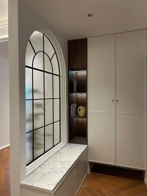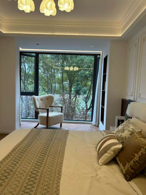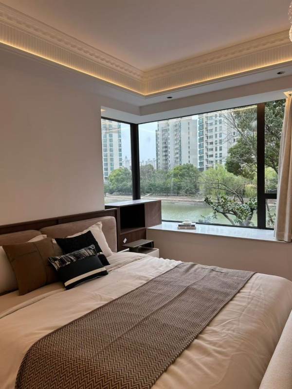 Commanding unobstructed river and greenery views, this 170sqm 3-bedroom apartment in a sought-after Tangqiao community is newly renovated with a refined French-inspired aesthetic. The residence is defined by an expansive master suite with double doors, a walk-in closet, and bathtub/seperate shower. Floor-to-ceiling windows ensure the space is filled with natural light throughout the day.