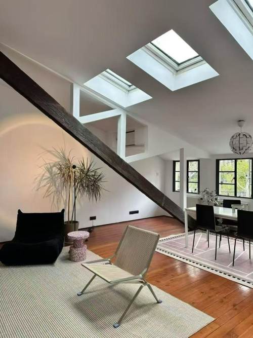 A unique, light-filled home that blends heritage charm with contemporary living. The spacious 120sqm layout features 1 bedroom, 1 open office and 2 bathrooms. The residence is defined by a double-height living room with original steel-framed windows and skylight, which together create a bright, open, and luminous atmosphere. The open kitchen and modern furnishings complement the architectural character.