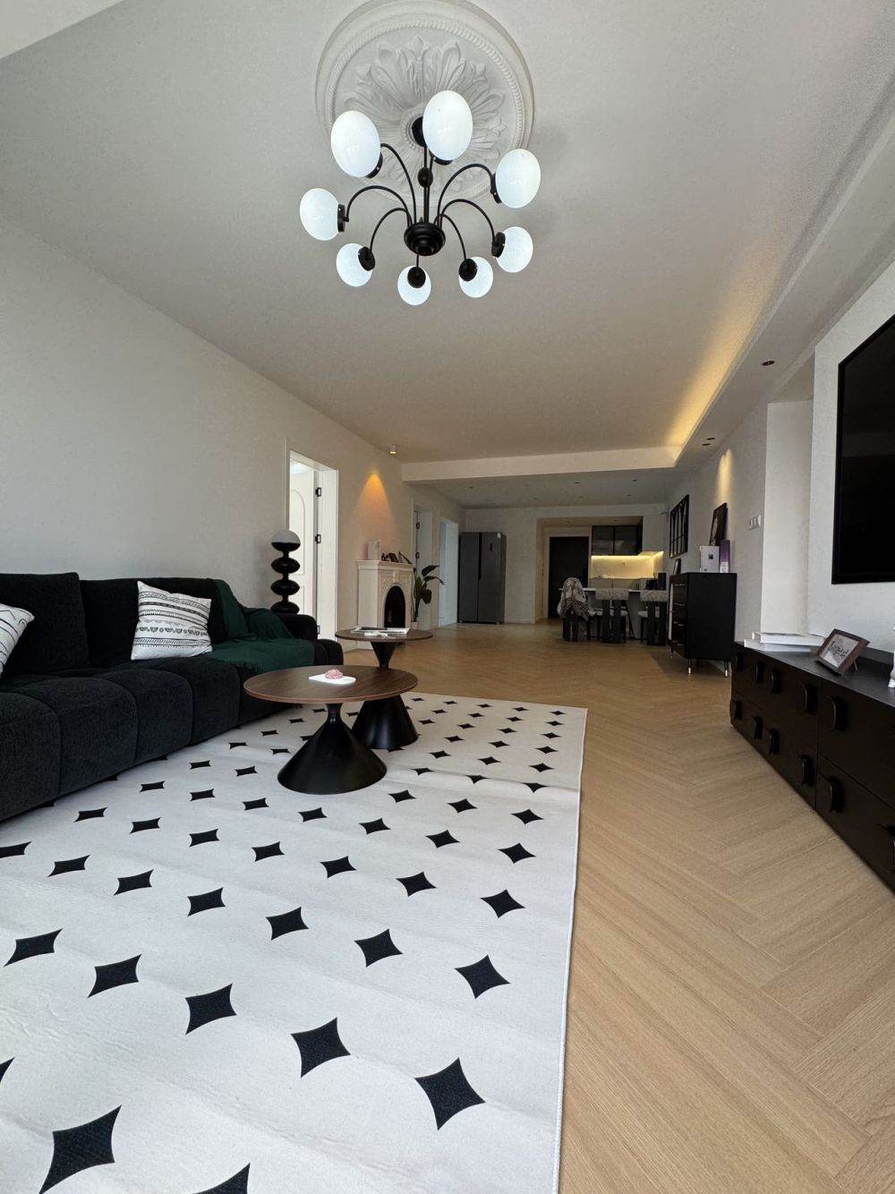 Layout : The flat is built in Modern style, 160 Square meters. It has 3 Bedrooms,2 Huge Living room,2 bathrooms, a kitchen, and a Balcony.