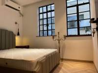 This 150sqm, third-floor apartment is part of a comprehensively renovated classic building. It features two bedrooms, two bathrooms, and floor-to-ceiling windows throughout. The interior is finished in a contemporary style with an open kitchen that includes an oven. The residence is equipped with floor heating and a smart home system.