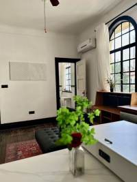 It's on 2nd floor of garden house. It has 1 bedroom, 1 office and 2 bathrooms. Size is 80 sqm.