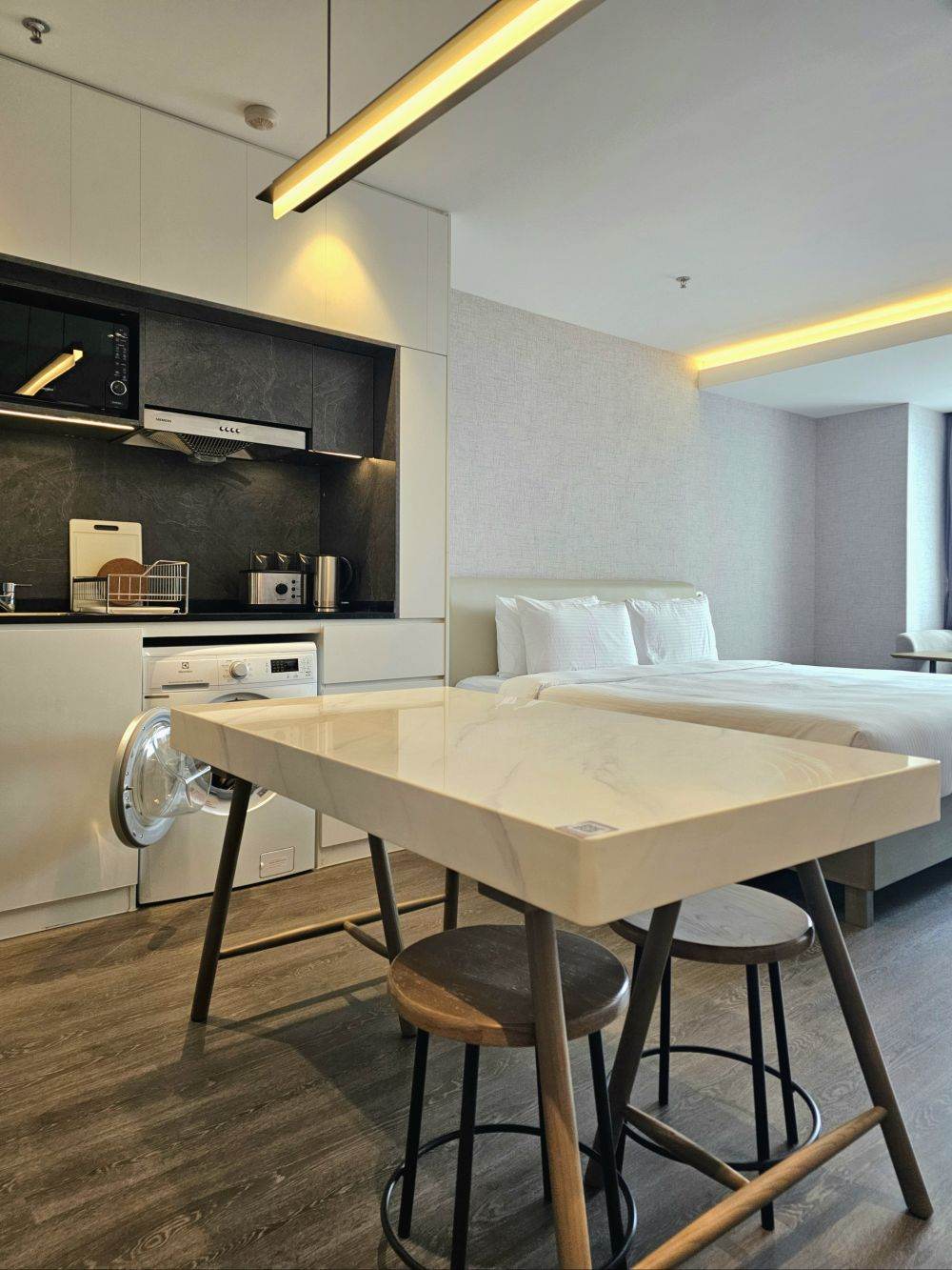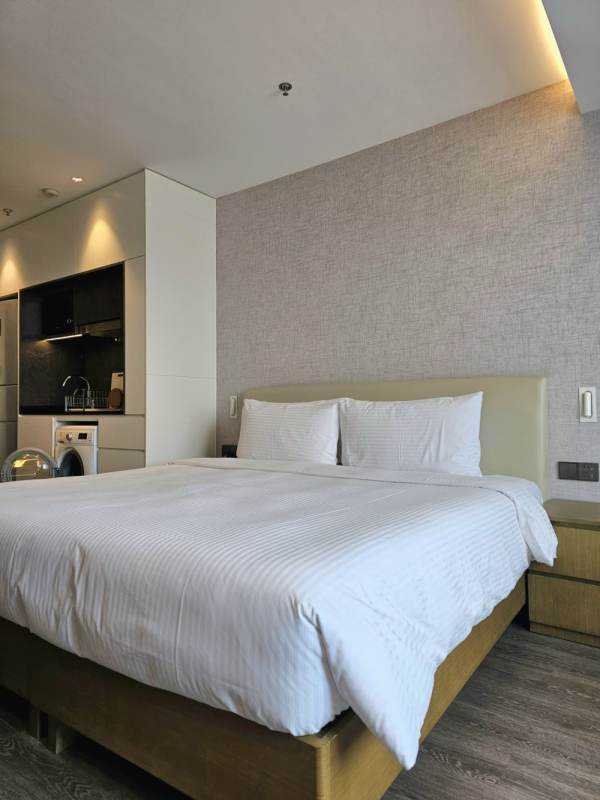 Independent bathroom and kitchen, fine decoration, brand furniture and appliances (dishwasher, oven, refrigerator, microwave, toaster, washer-dryer, large bathtub), move-in ready, large glass windows for good lighting and ventilation, split-type independent central air conditioning, no cross-infection of air between rooms. Broadband. Cable TV Cleaning twice a week (including changing linen once) 【Public Facilities】: The apartment is equipped with a variety of recreational facilities, including a gym, yoga studio, meeting rooms, co - working spaces, a sauna, and a lounge. There is a full - monitoring system and security guards on duty. They provide meticulous and thoughtful services 24 hours a day to ensure a safe living environment for you and your family. Residents can use these facilities for free. The price will be different for long lease or short lease. The price will be higher for the higher floors. If you require any further information about our properties, or wish to arrange a viewing please contact us by we-chat or telephone.