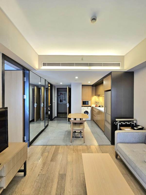 - **Overall Environment**: High-rise buildings in the city can be seen outside the window, and it is located in a relatively prosperous area. The interior decoration style is simple and fashionable, and the functional areas are clearly divided. Whether for short-term stay or long-term living, it can provide a comfortable and convenient experience.