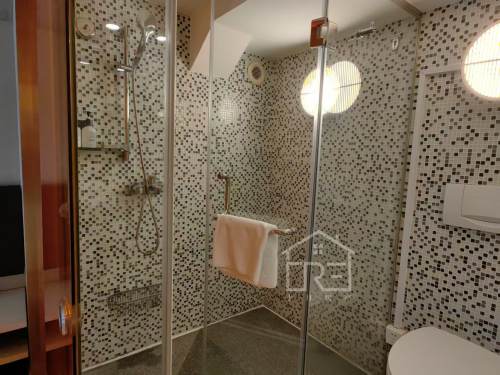 Separate living room is connected to balcony , open kitchen has oven,western bathroom with separate shower area .
