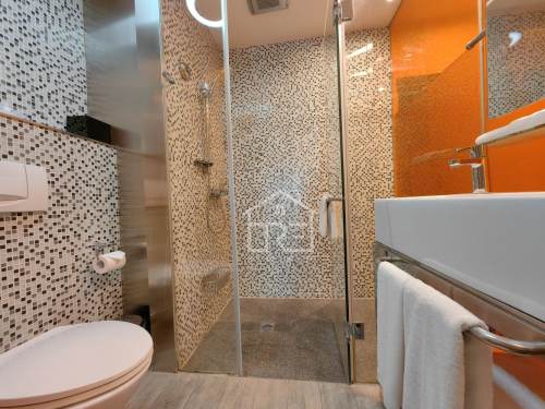 Separate living room is connected to balcony , open kitchen has oven,western bathroom with separate shower area .