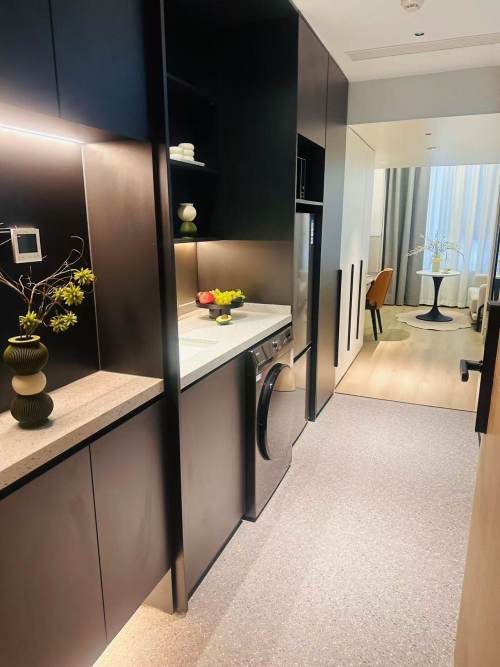 The apartment is a 3 minutes walk from Xiang'yin Rd Metro in Yang’pu District Line 8.