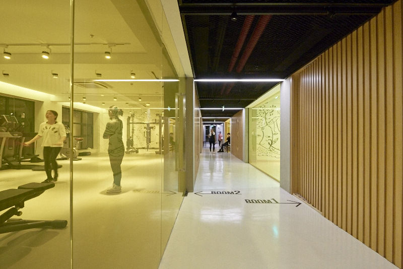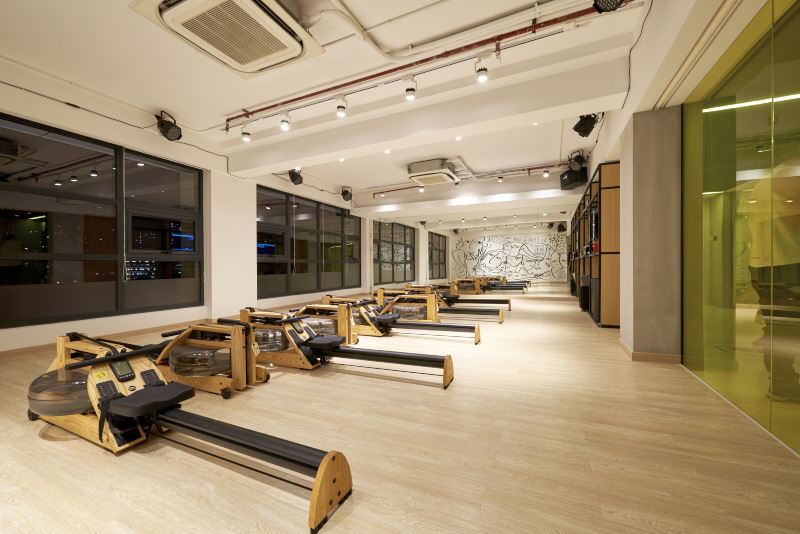 A gym that offers classes in hip hop dancing, weight lifting, and rowing. The interiors are designed by Max Trullas Moreno with wood panel walls, tall windows, and expensive equipment. They claim to be the only gym with water resistance rowing machines. The first session for any of the courses are free to try out. Group classes range from 200-110rmb depending on the type and if bought in a package. Personal classes are around 550rmb.