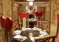 Hello Kitty Hot Pot is exactly what you think it is. A Hello Kitty-branded hot pot restaurant. In a very pink environment guests are having shabu-shabu Japanese style hot pot -- individual pots -- with the meats, mushrooms, and greens you would get at a regular place. Dinner for four is between 600rmb to 800rmb.