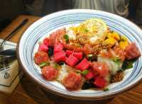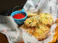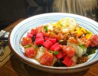 Poke place opening up as poke places get super popular in Shanghai. It's alright. Four or five varieties of poke bowls with options for 2 or 3 seafood items. Prices are 50rmb-60rmb for two and 70-80rmb for three. They've got a few interesting non poke items. A truffle hot dog, a chicken quesadilla, and a peanut butter, cheese, mushroom, and bacon sandwich for 38rmb.