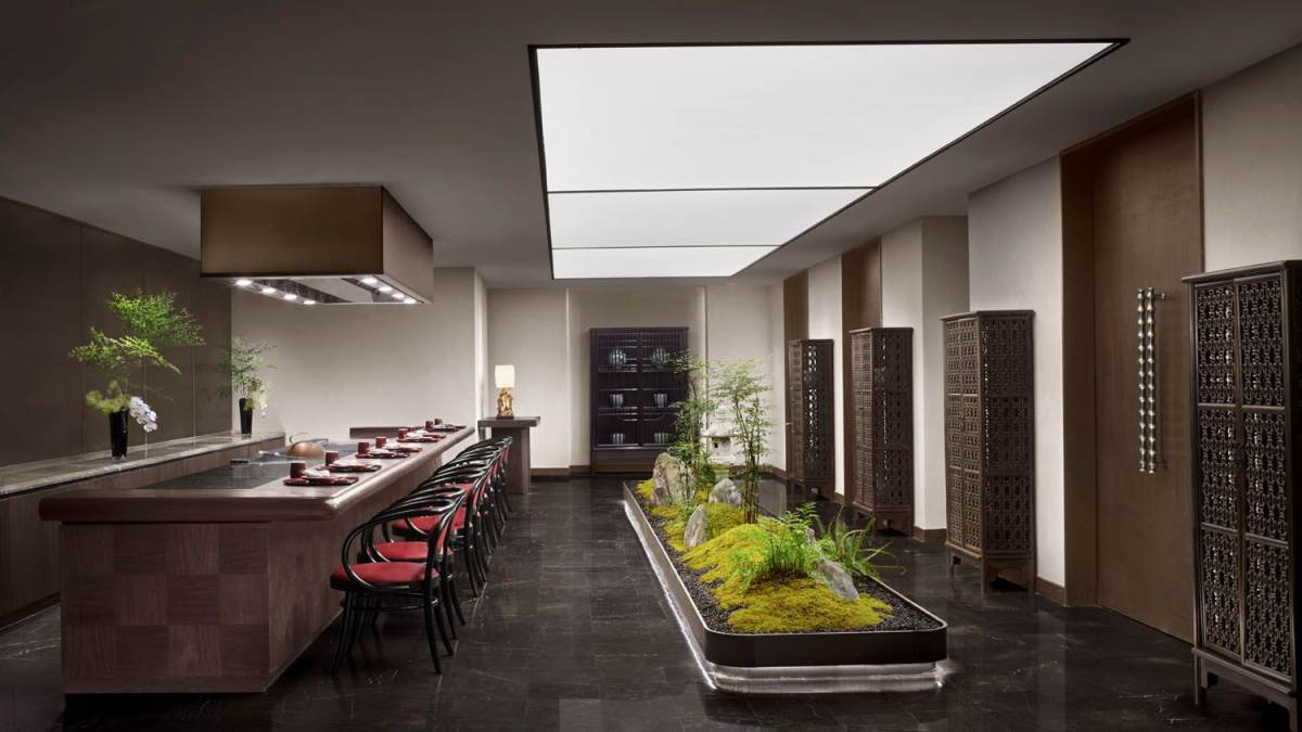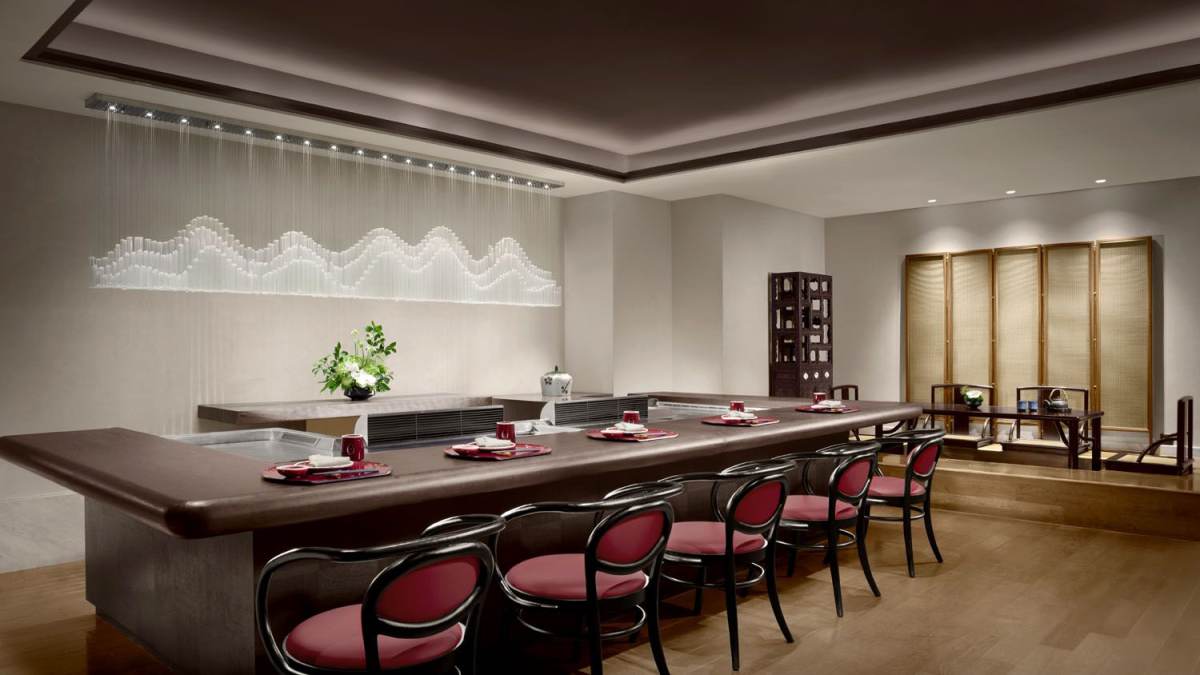 St. Regis Shanghai Jing'an's Japanese restaurant with 4 private rooms, serving sushi and teppanyaki.