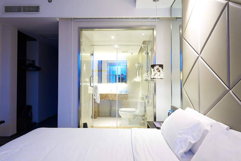 The check-in is smooth (despite the staff's difficulty with English) and the rooms are usually excellent, though on the smaller side. Orange prides itself on being a modern multi-star hotel jammed into affordable rooms. There're huge Bluetooth speakers under the TV, the lighting system is all touchscreen and in order to get power to the room, instead of sliding your card into a slot, you just lay it down gently inside this curved orb thing in the wall. Also, the bathroom has a full-length window onto the bed, in case your parents or friends like to check each other’s soap usage and showering process. The neighborhood is great for visitors, with a makeshift wet market spread around the outside of the hotel (the layout is weird, the hotel is set perpendicularly off the street), lots of Shanghai color that people who live here ignore but visitors love (and should), and just a generally vibrant neighborhood. All within a 10-minute walk of the Changping Lu metro station, which connects to the very useful Line 7.