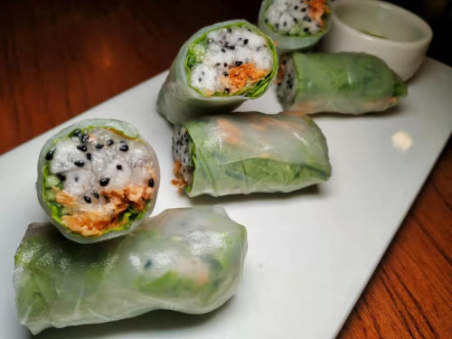 Mixed Western and Chinese options availalble here, from braised eggplant with soy to quinoa salad and vegan pizza, and the veggie spring rolls pictured above. Nice touch: iPad menus with pictures and (very welcome) English options.