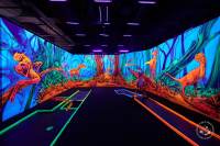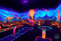 Mini golf madness. Glowing, air-conditioned, ultraviolet-lit rooms, covered in intense colors and artworks, their 3D glasses transform a game of mini golf into kind of an acid trip; balls appear to hover above the ground, animals and characters come to life, and as you move through the rooms, the journey takes you through space, underwater and dinosaur world. The course is built to European Mini Golf tournament standard.
