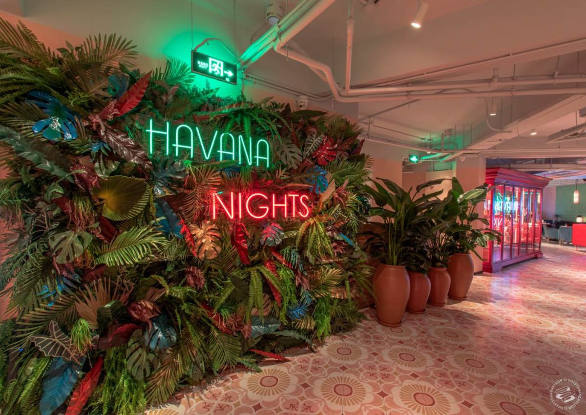Havana Chino Latino covers the 5th floor of the same building as Le Baron with pastel colors, tiles from your abuela's kitchen and hacienda shutters. In case the name didn't make it clear, it's heavily name-checking Havana, Cuba, or at least a certain vision of it. It's spacious, something like 1,000sqm spread over two floors. Mix of high and low lounge seating, two separate bars, with a lounge diner menu of South American dishes with Chinese twists.