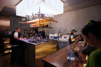 Interesting little spot built around a central cocktail mixing island from a trio of Taiwanese bartenders. Their 88rmb rainbow-color gin and tonics which glow under the table-side UV lights are actually good. The rest of the concise menu includes six classics with a twist and a non-alcoholic version each. Nice. Prices start at 98rmb. Not much seating, and all of it high-chair.