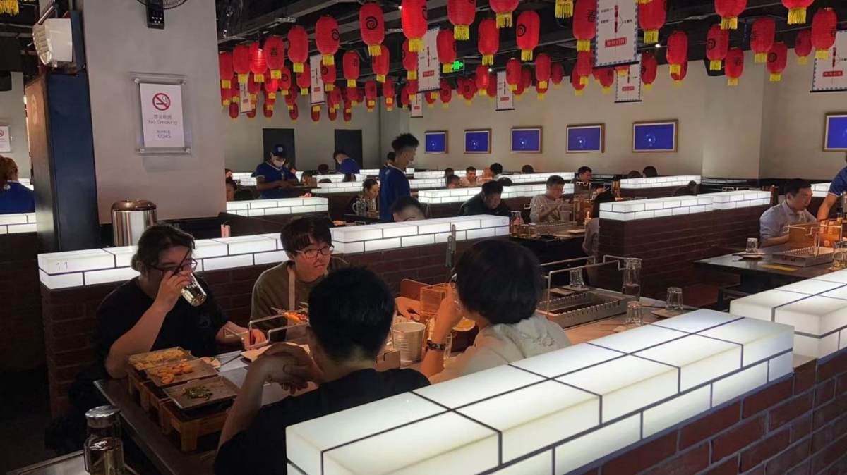 Chain restaurant with more than 40 locations in Shanghai, Hen Jiu Yi Qian is one of the best Mongolian style BBQs around town. Local, street food vibes with house music in the background and smell of BBQ all over the place. The meat is top quality along with a large selection of vegetables. Staff are polite, and they provide an apron and a plastic disposable phone cover to all customers to avoid the grease. Very chilling, happy environment that best suits friends gathering and late night dining.