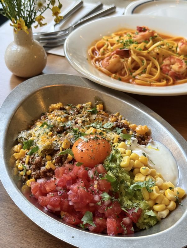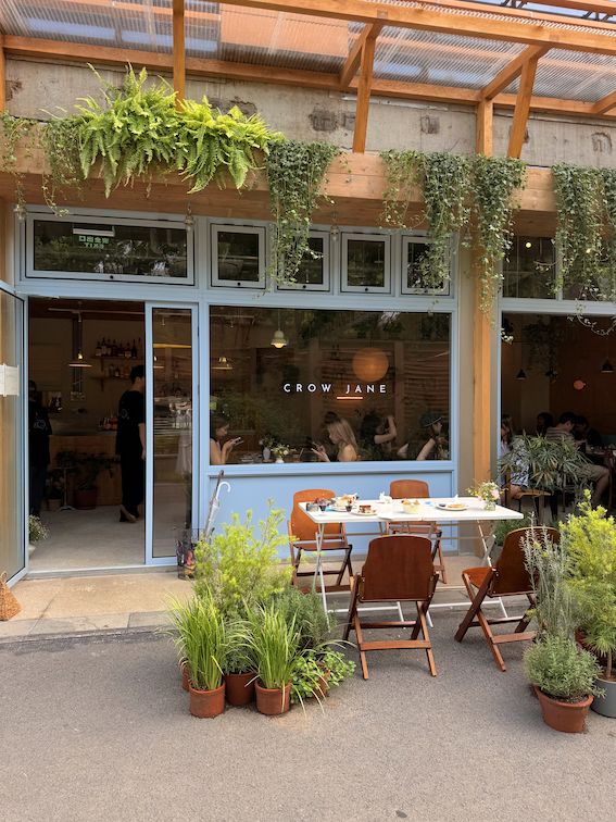 Crow Jane is a Western brunch and casual dining spot tucked into one of Yongyuan Lu’s newly developed inner streets, about a 10-minute walk from Jing’an Temple. Set within a low-key compound with a lawn and outdoor seating, it feels a little removed from the main road and stays relatively quiet, especially on weekdays. The space leans into a light blue, pastoral aesthetic, with a relaxed, slightly resort-like feel, and is pet-friendly. The menu centers on brunch staples with a North American and light Mexican influence, alongside pastas and a smaller dinner selection in the evening. It works well for unhurried daytime meals, casual meetups, or a late breakfast that stretches into the afternoon.