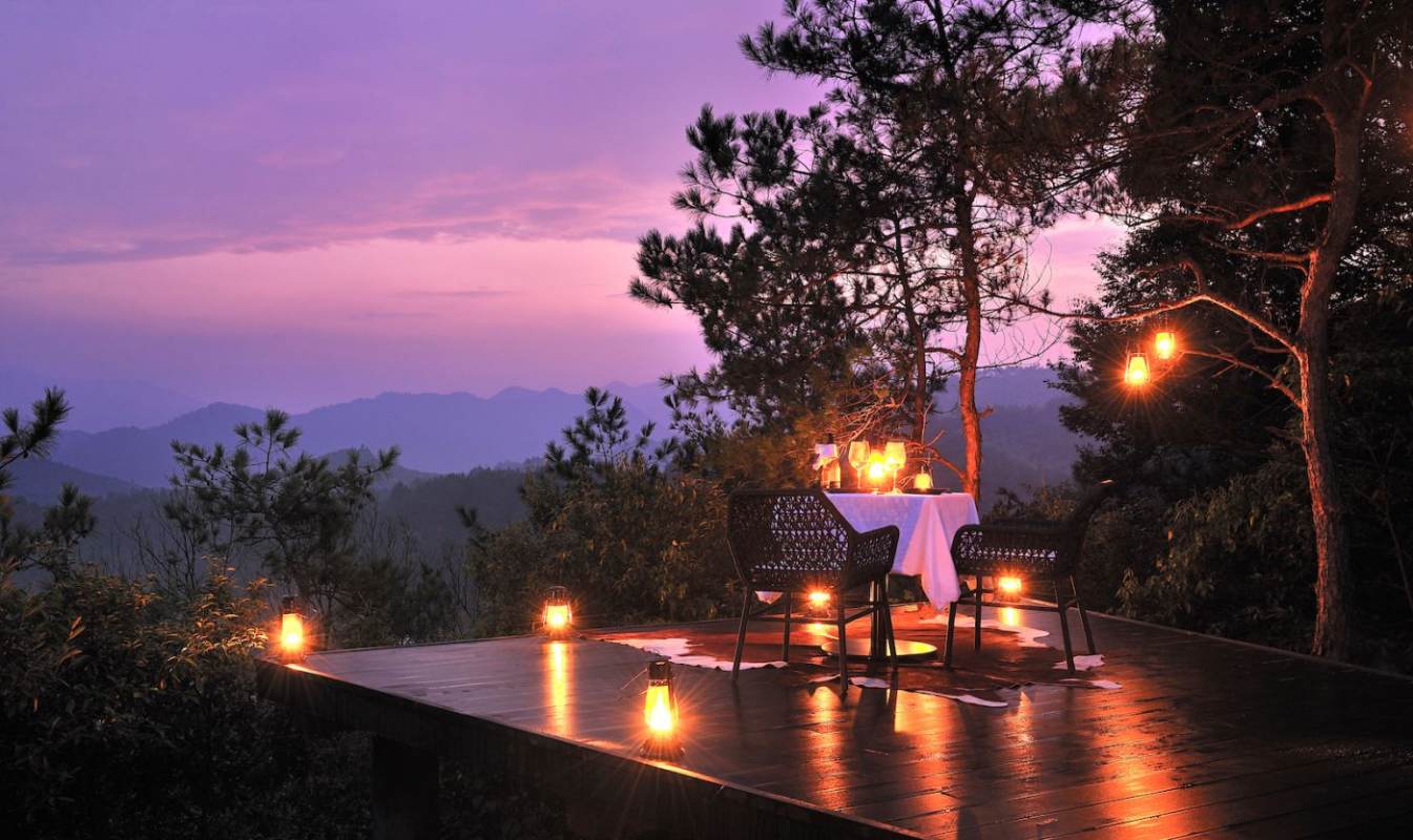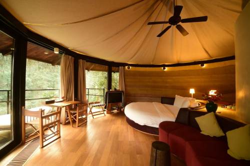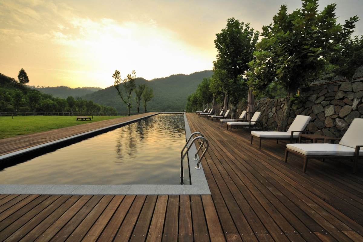 naked Stables Private Reserve is a resort in a protected nature reserve. Luxury accommodation is in spacious Tree Top Villas or single bedroom Earth Huts, spread across a broad, secluded valley in the foothills of Moganshan. Access is by foot or electric buggy. No motor vehicles are permitted. They also offer a range of activities — mountain biking, horse riding and hiking, three swimming pools, things for kids and some yoga / meditation stuff. Really nice place to escape to.